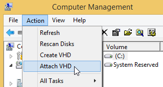 Alternatively, use Attach VHD
