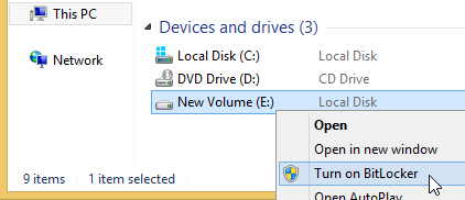 - If you have a spare or backup drive (having sufficient space to store all data you need to migrate to BitLocker), encrypt it by BitLocker (click the drive in Explorer using the right mouse button and select
