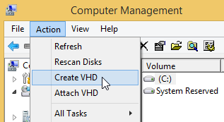 window and select Create VHD: