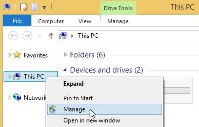 item in the context menu of the drive.